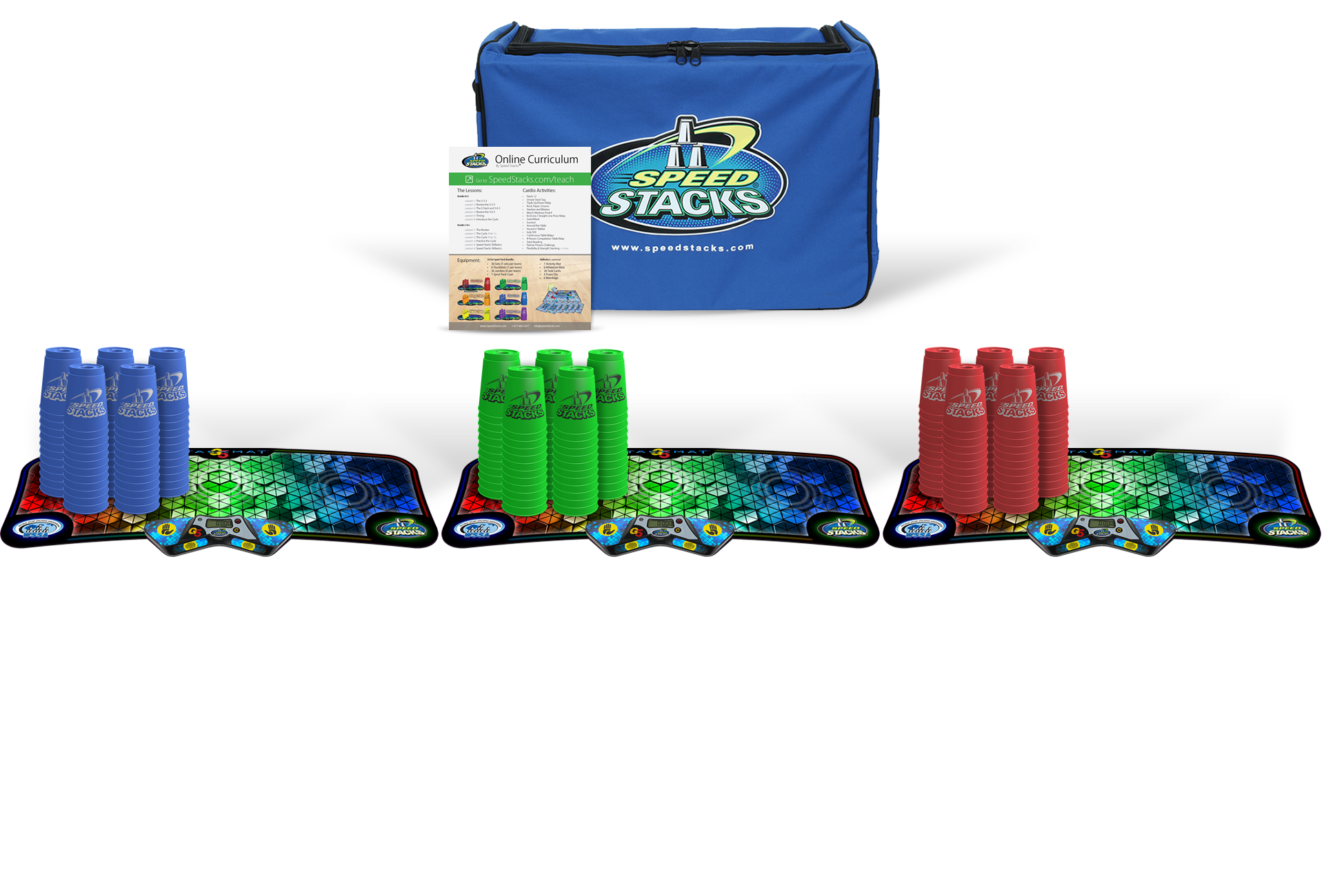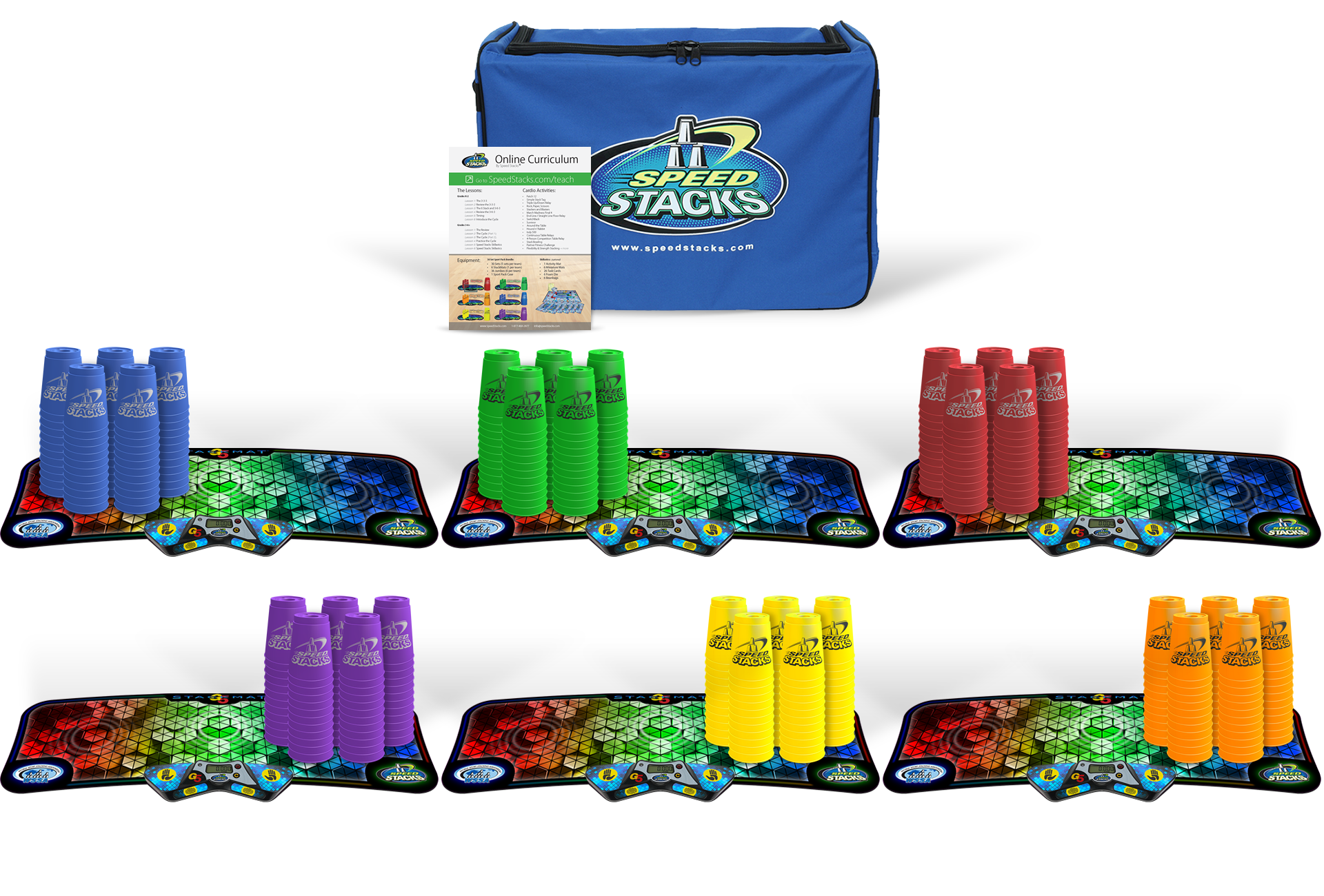 Starting a sport stacking program is easy. A Speed Stacks Sport Pack provides everything you need for a successful sport stacking program with enough equipment for your entire class to participate at once. Sport Packs include everything you see here, plus step by step instructions on how to teach your students the proper skills to be successful.